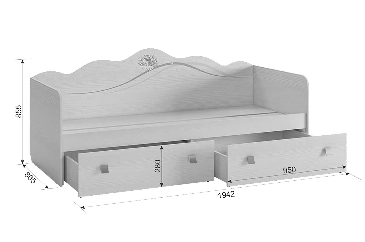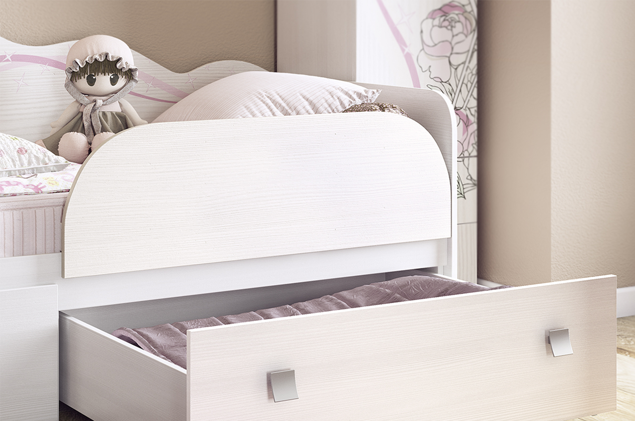 Кровать Фэнтези поражает своей красотой и функциональностью. Изысканный рисунок на спинке придает особый шарм, создавая атмосферу сказки. Для комфортного и безопасного сна ребенка предусмотрены высокие боковины и спинка. Плюс, два просторных выдвижных ящика предоставляют удобное место для хранения постельного белья. Долговечность рисунка гарантирована благодаря устойчивости к износу и ультрафиолетовому излучению.