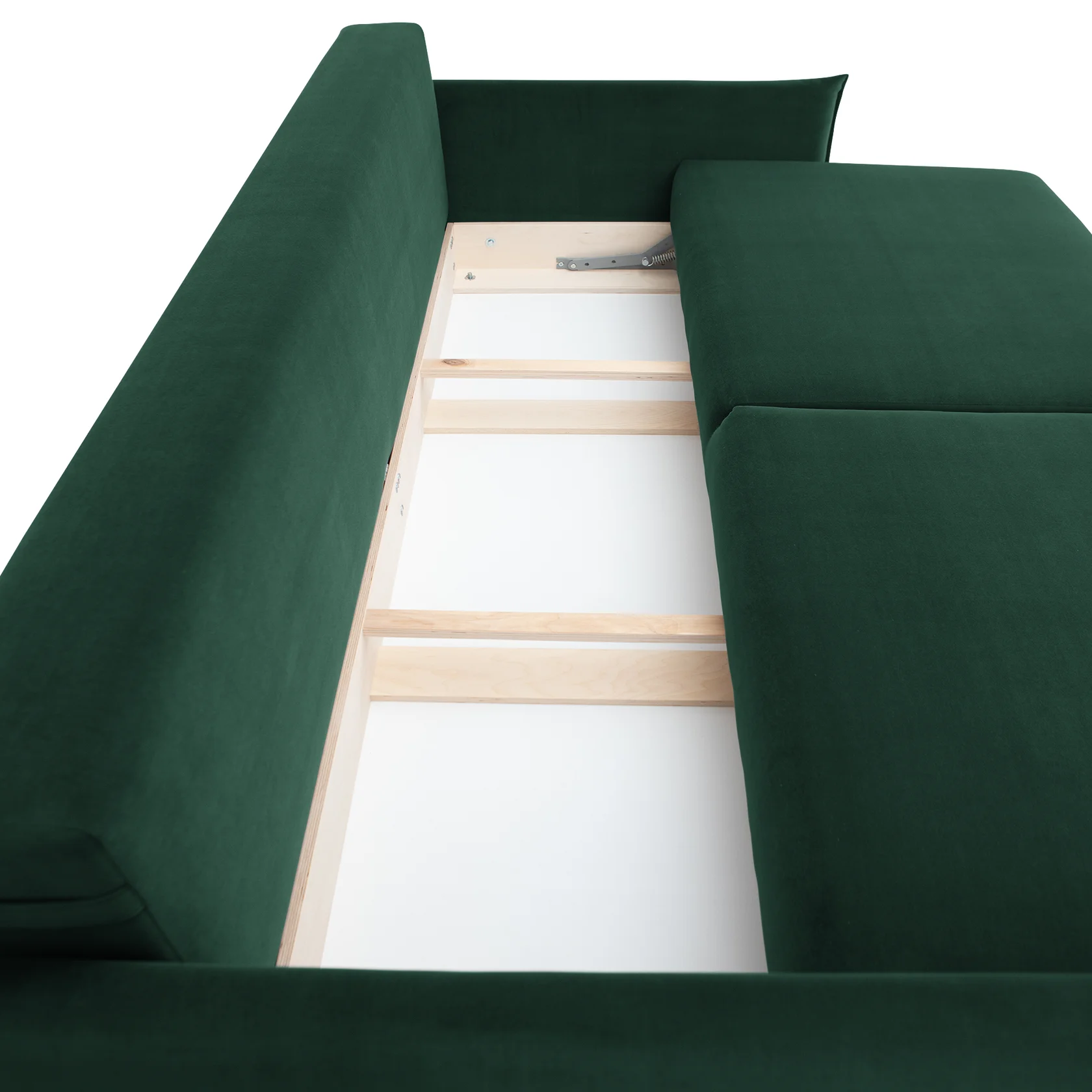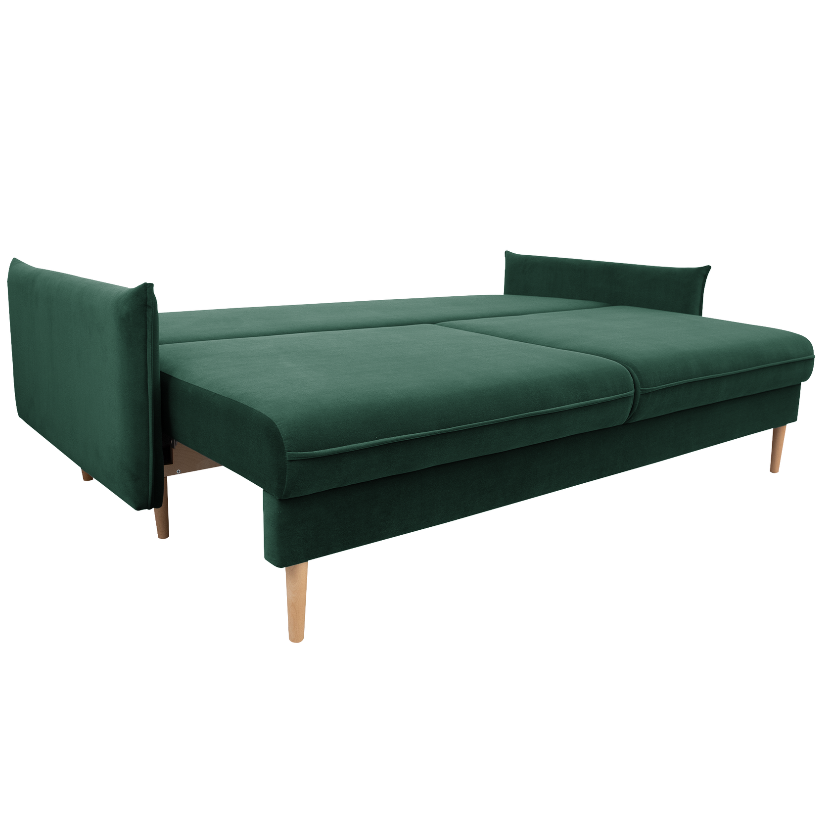 Диван-кровать Фьорд — один из классических представителей скандинавского стиля. Он минималистичен и привлекателен. Аккуратные строчки, ножки из натурального массива березы и нежная велюровая обивка — продумана каждая деталь.