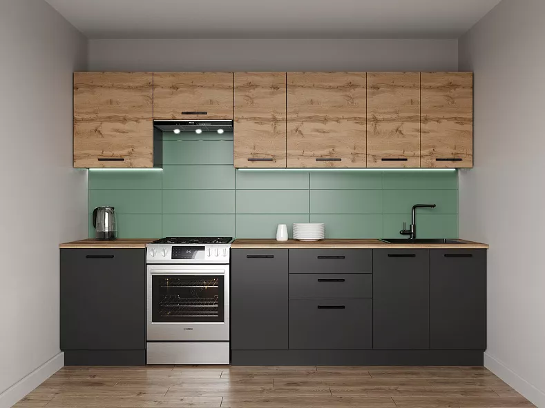 Фасады верхних модулей со свесом 12 мм дают возможность использовать без установки ручек.