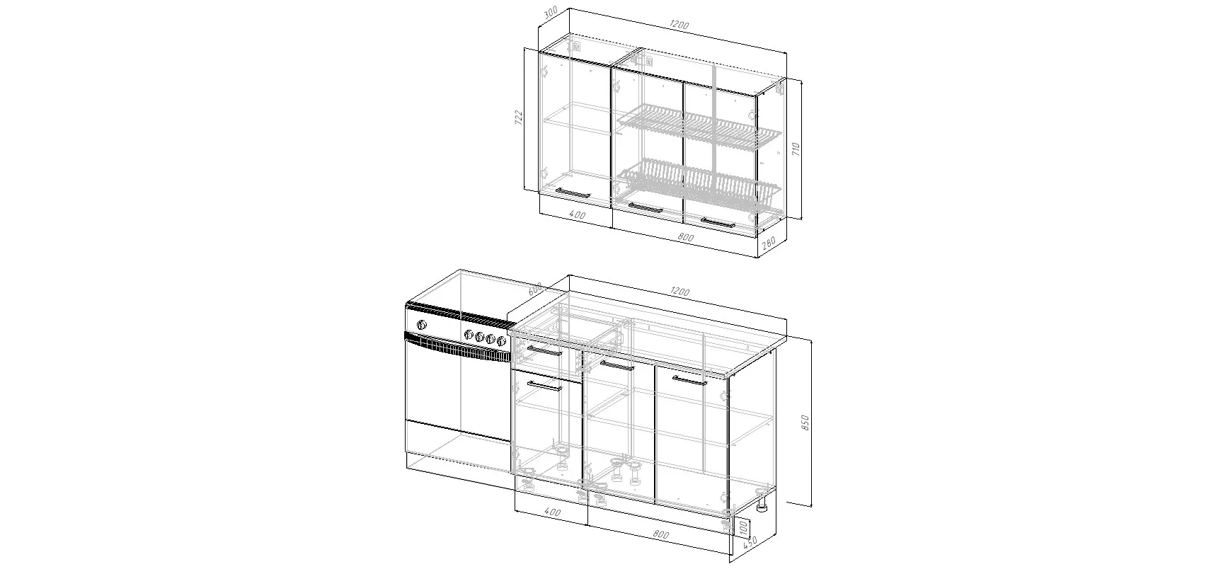 Высота верхних модулей 720 мм