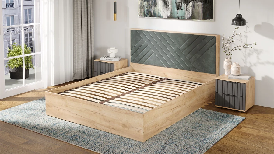 Кровать без ПМ Хилтон Тип 1 (без подъемного механизма) дуб крафт золотой/графит софт