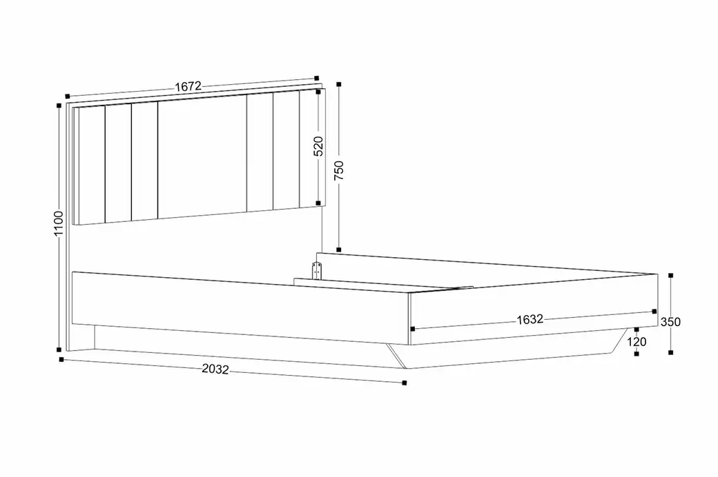 Ширина: 1472/1672 мм | Глубина: 2032 мм | Высота: 1100 мм