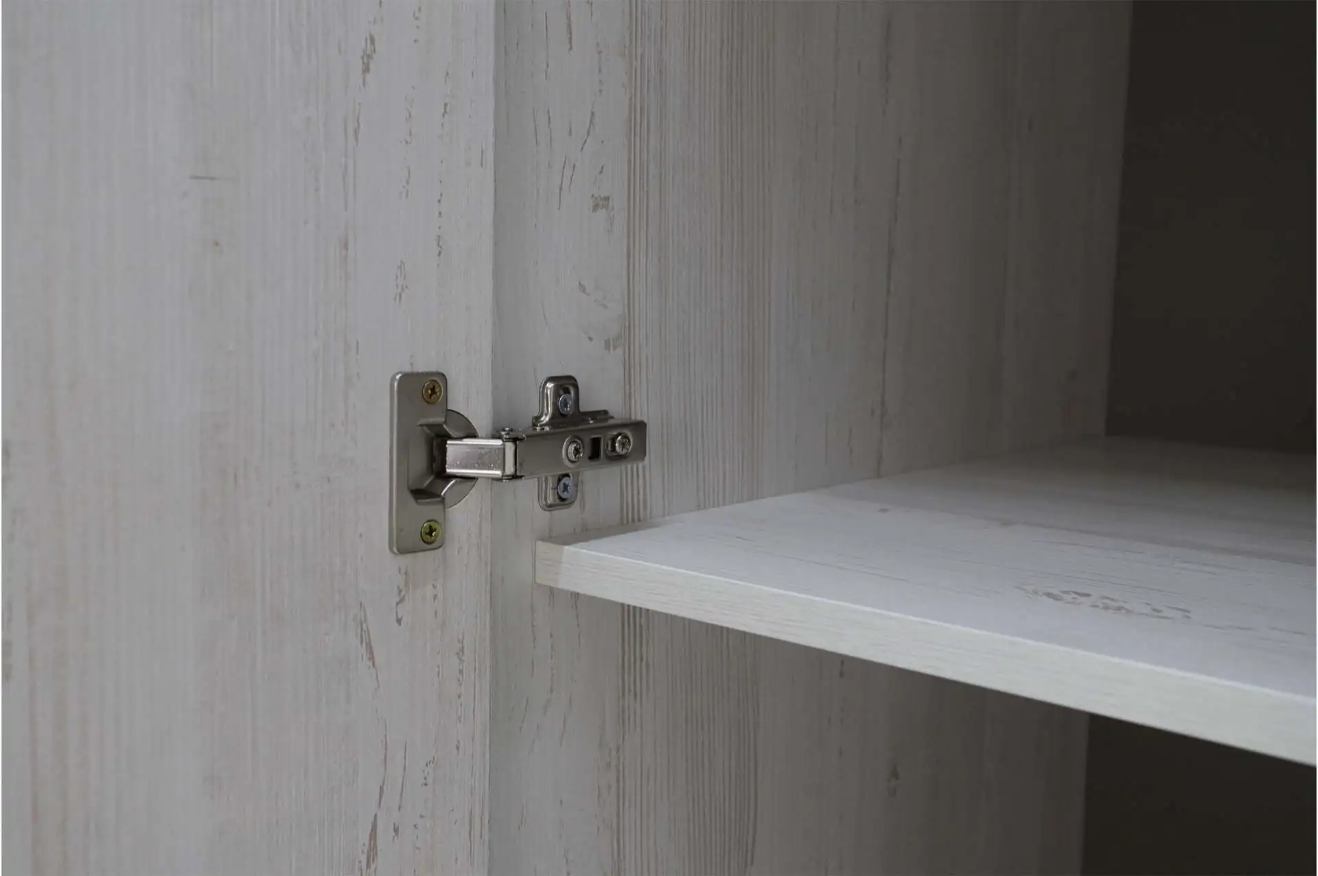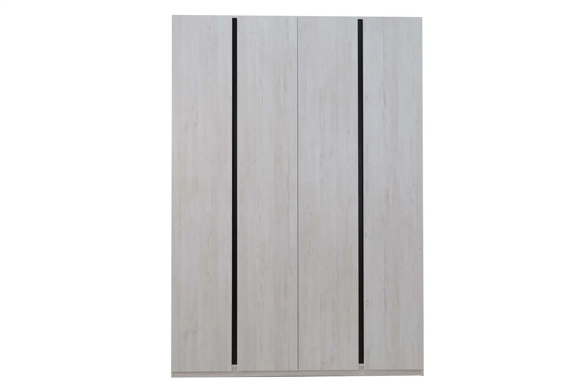Этот современный шкаф представлен в трех трендовых цветах ЛДСП. Каждая из двух секций оснащена полками и штангами, что делает удобным использование шкафа для двух людей. Это стильное решение для совместного хранения одежды и аксессуаров.
