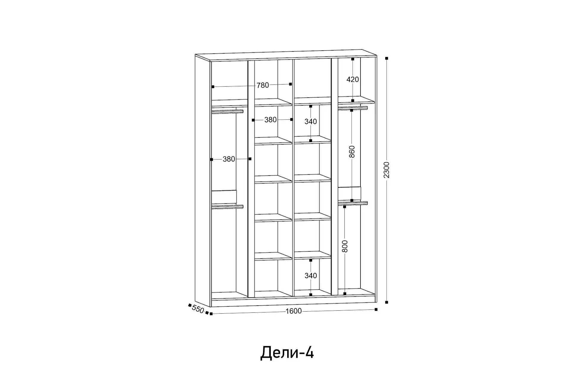 Магазин мебели «100Диванов» предлагает купить Шкаф 4-х створчатый Дели в Тюмени по выгодным ценам от производителя с доставкой.
