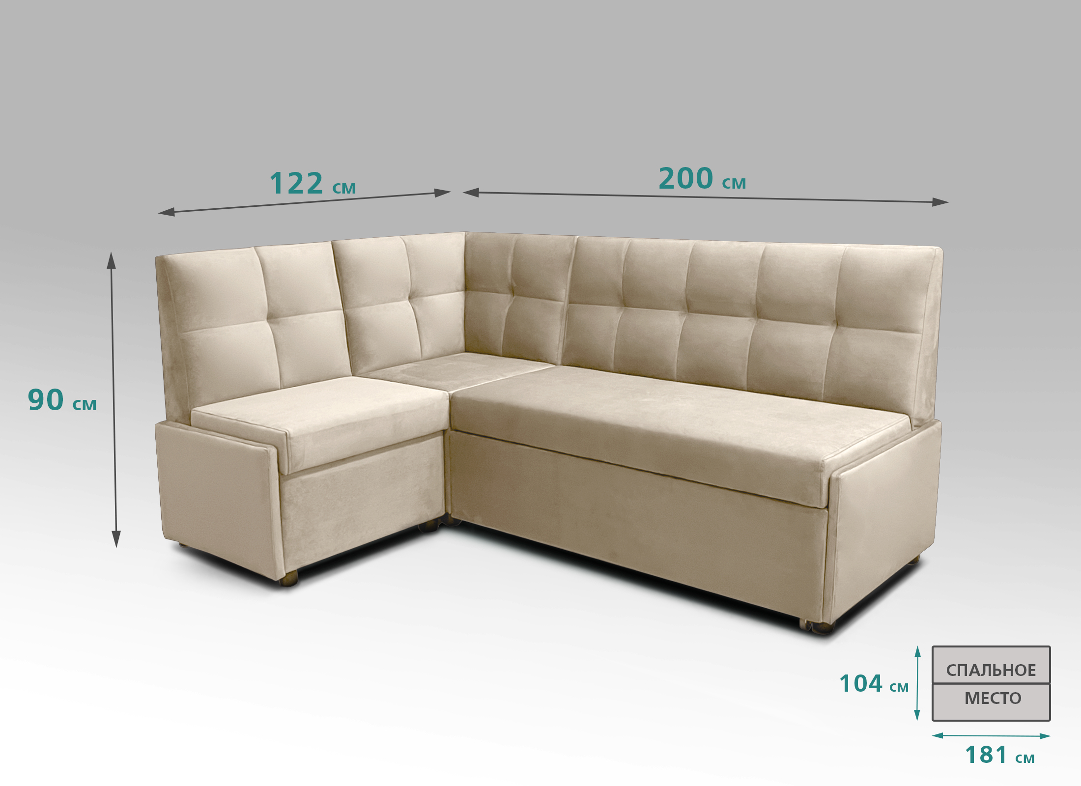 Размеры диван, мм: 2000х1220хh900,