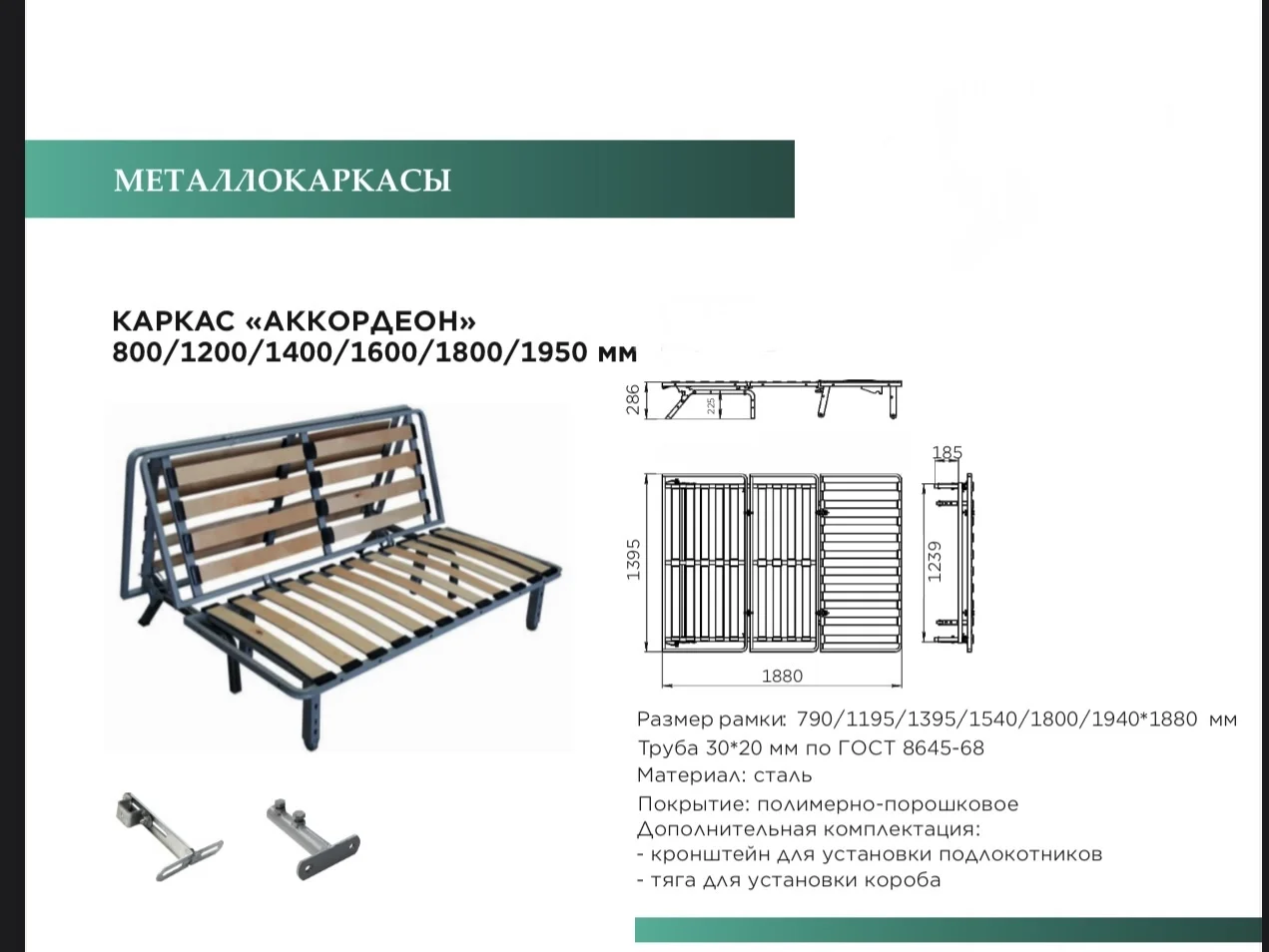 Каркас: Металлокаркас и березовые ламели