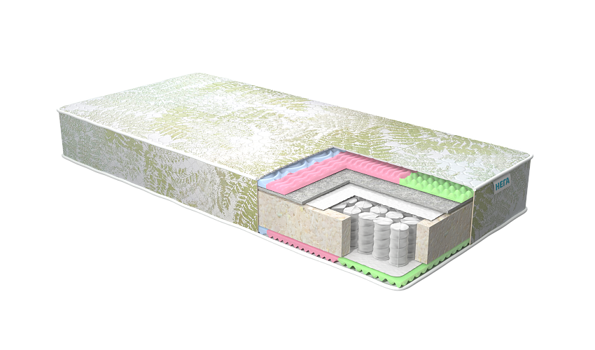 Ортопедический матрас Natura Тайга Плюс получил новое наполнение и стал разносторонним. С одной стороны матрас укомплектован 5-ти зональной пеной на основе 3Д резки и плотным слоем волтекса, что добавило одной стороне дополнительную жесткость и упругую эластичность. Волтекс - современный дышащий наполнитель, содержащий натуральные волокна шерсти, хлопка и льна, защищает слои матраса от повреждений пружинами во время эксплуатации матраса. Другая сторона матраса Тайга Плюс на основе плотной пены с массажным эффектом имеет жесткость ниже средней. 5-ти зональная поверхность бережно поддерживает все анатомические изгибы тела. Разносторонний матрас Тайга Плюс можно регулярно переворачивать, варьируя ощущения. Новый трикотаж с принтом "листья папоротника" обладает высокой плотностью, за счет особого плетения устойчив к зацепкам и катышкам. Компания-производитель оставляет за собой право вносить конструктивные изменения в модели, а так же изменять вид ткани цельнозашивного чехла в целях улучшения внешнего вида, функционала и потребительских качеств изделия. По умолчанию матрас укомплектован независимым пружинным блоком TFK, (256 пружин на 1 кв метр или 500 пружин на одно спальное место). Блок TFK обеспечивает стандартный ортопедический эффект: матрас в целом повторяет контуры лежащего на нем человека, позвоночник остается ровным, что способствует восстановлению его естественных физиологических изгибов.