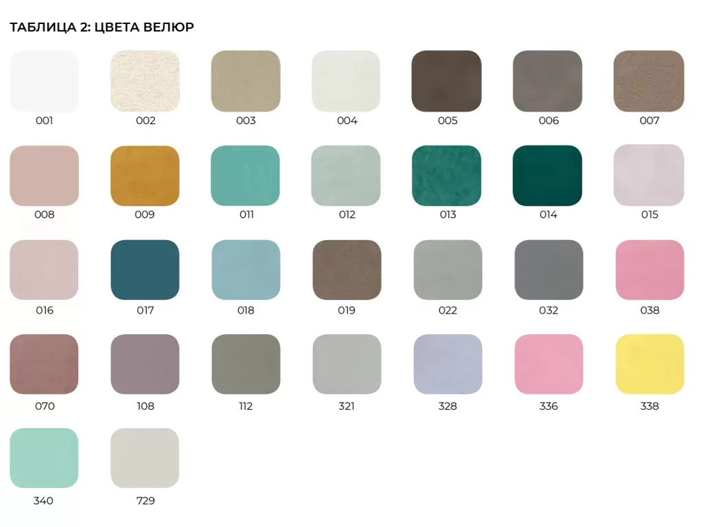 Обивка: велюр на выбор