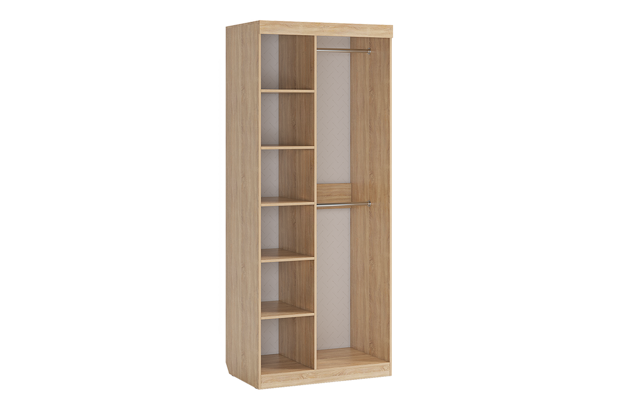 Этот шкаф станет настоящим спасением даже для небольшой детской комнаты. Широкая штанга предоставляет удобное место для висячей одежды, в то время как вместительные полки помогут организовать хранение белья и других вещей. Дополнительное преимущество модели — практичный вырез под плинтус, который обеспечивает идеальную установку.