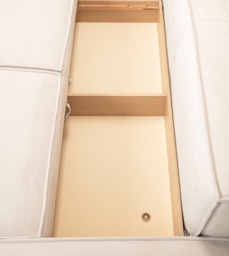В конструкции прочный металлический каркас HEAVY METAL с повышенной гарантией 67 месяцев. Дополнительное положение RELAX позволяет телу максимально расслабиться, а наклон увеличивает глубину сиденья на 30%. Механизм «еврокнижка» превращает диван в кровать без особых усилий. Ортопедическое наполнениеAURORA FORM + идеально подходит для ежедневного сна. Ниши для хранения расположены под посадочным местом.